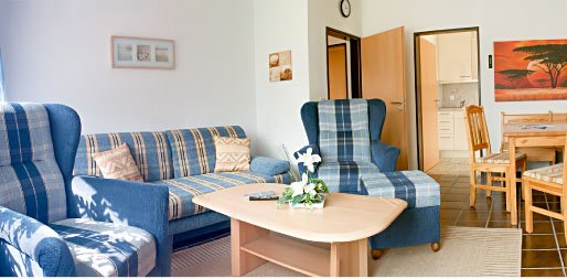 Zur Wohnung gehört neben einem modern ausgestatteten Badezimmern mit Dusche eine komplett eingerichtete Küche sowie eine bestuhlte Terrasse mit Gartenanlage. Das Wohnzimmer ist ausgestattet mit Flachbildfernseher, Radio, gemütlicher Sitzecke und einer Essecke mit Eckbank und Stühlen. Ein PKW-Einstellplatz ist direkt vor dem Haus vorhanden. Die Ausstattung beinhaltet weiterhin einen Hochstuhl und eine Reisebett für die ganz kleinen Gäste. Eine Spielesammlung ist vorhanden. Draußen befindet sich ein Sandkasten auf dem Grundstück.